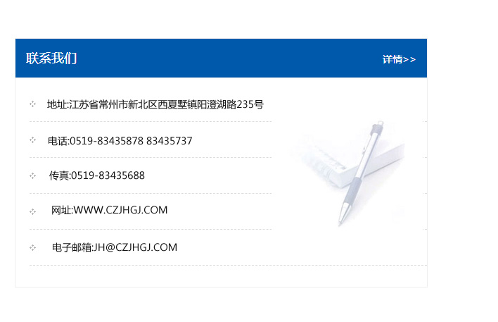 傳真:0519-83435688    郵編:213135    網址:WWW.czjhgj_com.tkxingzuo.com    電子郵箱:JH@czjhgj_com.tkxingzuo.com